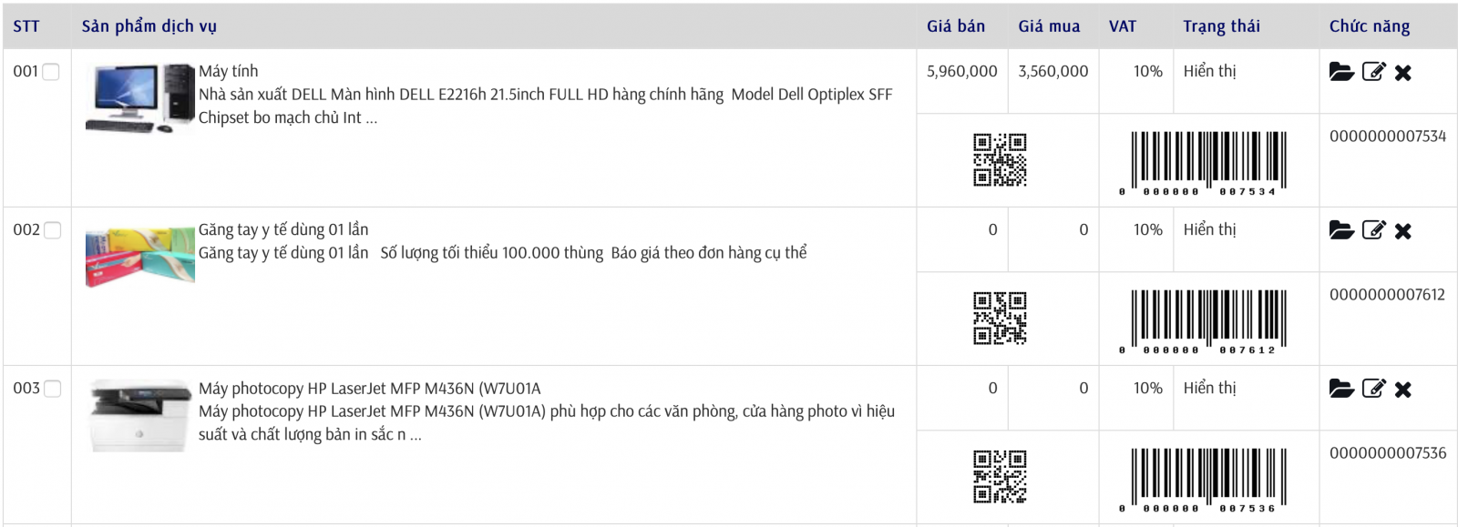 Quản lý sản phẩm, barcode, qrcode